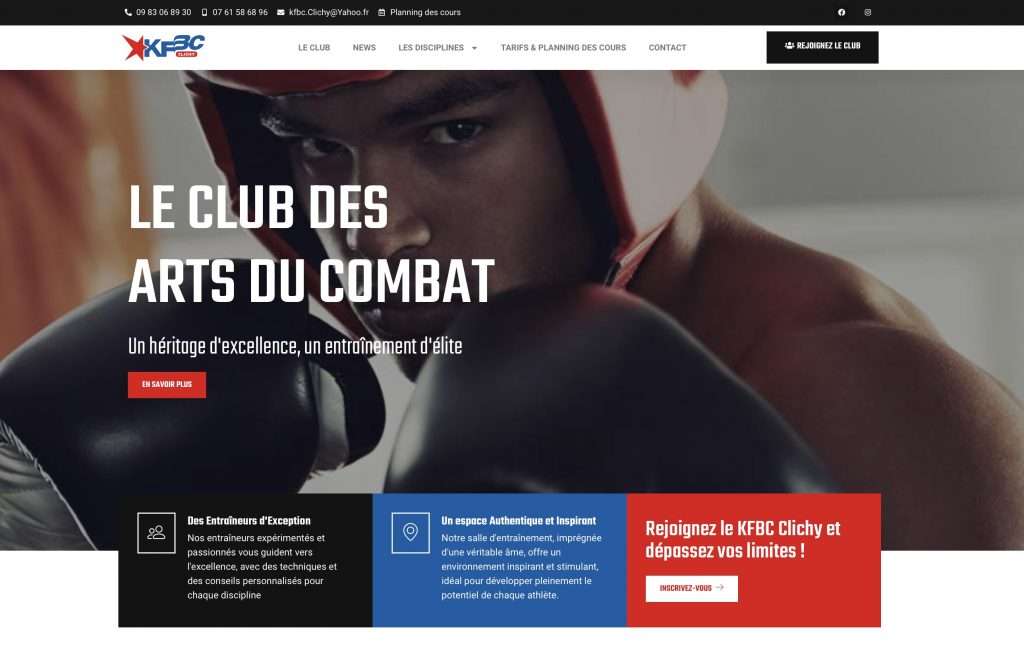 Dans l’arène vibrante des sports de combat, le KFBC Clichy se distingue par son énergie débordante et son engagement envers ses membres. Cependant, dans notre monde connecté, il est crucial d’avoir une présence en ligne solide pour briller et attirer de nouveaux passionnés. Notre agence digitale, spécialisée dans la création de sites web et la communication digitale, est intervenue pour transformer leur présence numérique.